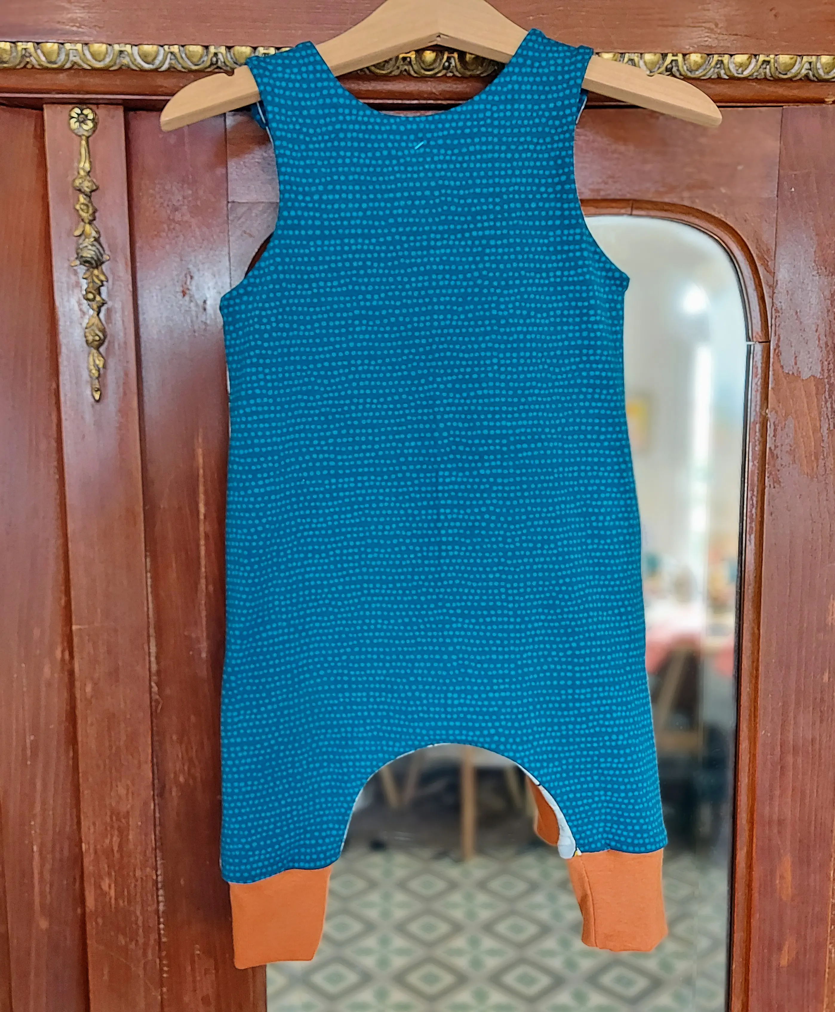 El peto Jon está pensado para el juego y la libertad de movimiento en niñas y niños. Su diseño es holgado y los materiales son ecológicos ya que está elaborado en algodón orgánico 95%. En tejido camiseta muy suave y respetuoso con la piel.