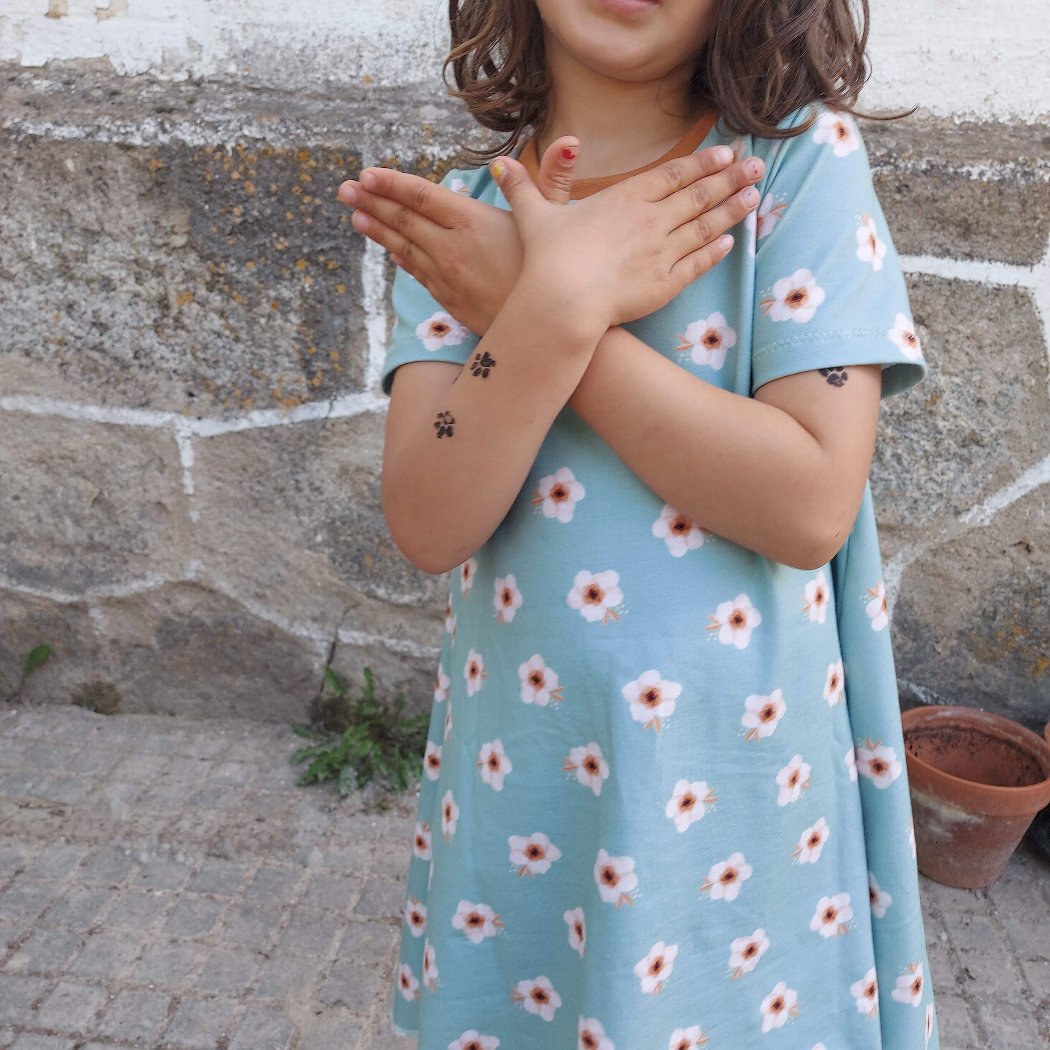 Vestido Espíritu Libre de manga corta, diseño holgado, ecológico, elaborado en algodón orgánico 95%. En tejido camiseta muy suave y respetuoso con la piel.